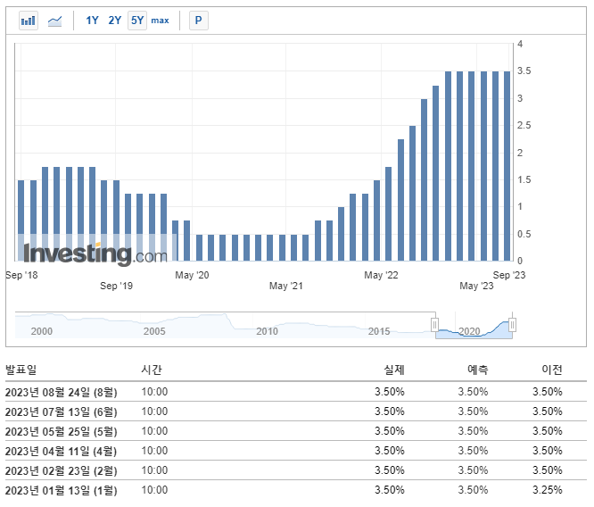 - 주식시장 동향: 기준금리 외에도 여러 가지 요인들(기업 실적, 정치·사회적 이슈다 등)이 주식시장 동향에 영향을 줍니다. 따라서 각 나라의 주식시장 전반적인 동태를 파악하는 것도 중요합니다.
