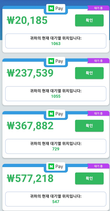 10/20(금) 현재 아래 그림과 같이 4, 6, 4, 4 가 되었습니다. 하루에 몇백씩 Count가 줄어들 때가 있었는데, 일주일동안 이거밖에 안줄어 들었다는게 말이 됩니까? ㅡㅡ;