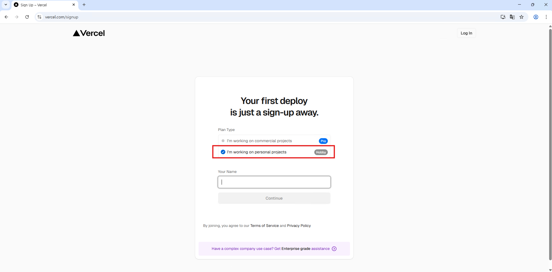 일단 상업용으로 사용할 건 아니라서 Hobby를 선택했습니다.